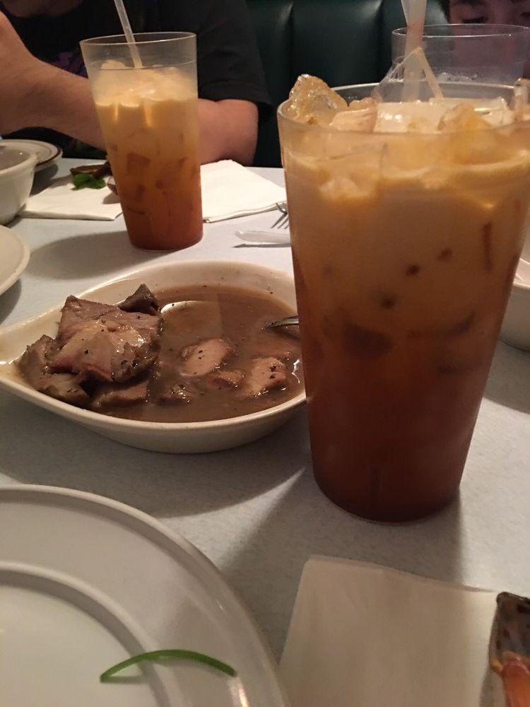 We ordered the Vegetarian Fried Rice, Vegetarian Noodles and the Egg rolls with Thai Iced tea w/Boba.